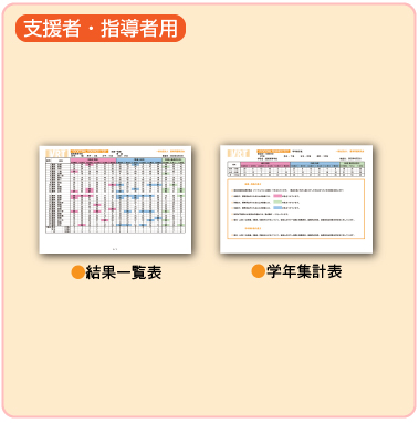 - 判定結果見本(結果票、アドバイスシート、クラス別結果一覧表、学年集計表、集計結果票)